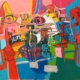 Working primarily on large canvases, her process integrates a wide range of materials including acrylic, oil, charcoal, watercolor, markers, and recycled organic components. Through this layered methodology, her works explore the relationship between material, memory, and the human figure.