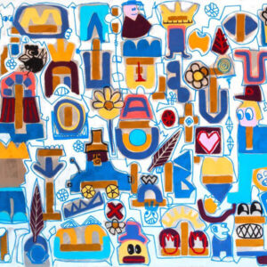 “When I look at my paintings, I’m taken back to my childhood of endless doodling on my bedroom floor,” the artist describes.